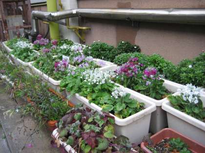 雨が少なかったこの冬,草花にとっては恵みの雨のようです。玄関前の花たちも,雨に打たれながらも,いきいき息づいているように見えました。