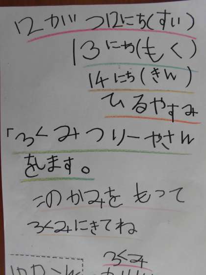 12月12日(水),13日(木),14日(金)の3日間,昼休みに「3くみ つりーやさん」を開店しています。お客様の先生方には,事前にチラシを持って行きます。チラシは持ってきてもらうことになっていて,そこについている100円券とおもちゃの100円玉を交換して,お買い物をしてもらいます。価格設定は,60円,70円,80円で,100円からのお釣りを計算する学習をします。