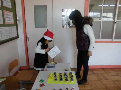 12月6日にツリーやさんに来てくださった。日本語指導の先生から,お礼にユニット折り紙をいただきました。今日のお昼休みの「ツリーやさん」の店頭に飾らせていただきました。