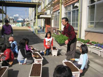 去年の春,ツタンカーメンの豆で作って食べた豆ご飯,おいしかったね。覚えているかな。この苗が育ったら,また,豆ご飯を作りたいと思います。それに,イチゴもあります。春がとってもたのしみになって来ました。新しい年度の活動が待ち遠しいね。
