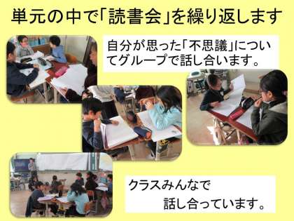 この単元では,「読書会」を繰り返し行います。その中で,どんどん読みが広がったり深まったりすることをめざします。