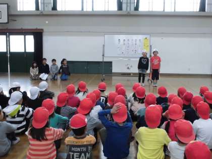 3月6日(水)3時間目に「わくわくおにごっこフェスティバル」が体育館でありました。このフェスティバルは,2年生が国語の学習を生かした活動で,今回は1年生を招待してくれました。「じゃんけんれっしゃ」「てつなぎおに」「のぞきおに」をしました。おにごっこは,担当の2年生がルールを説明してくれて,楽しく遊びました。