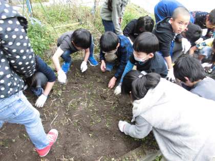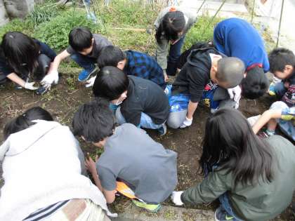 1年間2年生が使ってきた,畑の雑草を抜きました。根が張っていてかたくて抜きにくかったようですが,みんながんばって活動していました。