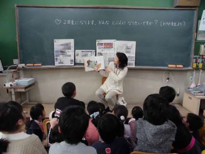 3月12日(火)は今年度最後のぶんぶんさんの読み聞かせでした。1年2組で読み聞かせしてもらった本は「ぼくびょうきじゃないよ」角野栄子:作,垂石眞子:絵(福音館書店)でした。