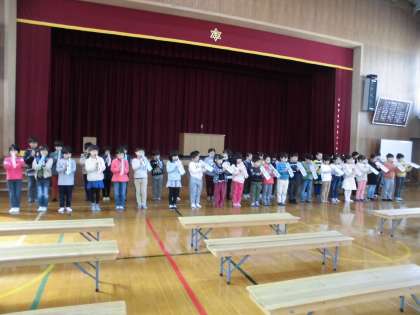 来年度の入学式に出席して,新2年生として入学生をお迎えします。お迎えの言葉を言ったり,鍵盤ハーモニカと鈴の演奏をしたり,お手玉やけん玉を見てもらったりします。本番緊張しないで,練習の成果を発揮できるように祈っています。