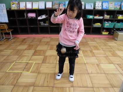 1月に「むかしあそび体験」で地域の方に来ていただいて,いろいろなむかし遊びを教えていただきました。学習が終ってからも,3組では続けて練習などをしてきました。そして,ヨーヨーが少しできるようになりました。