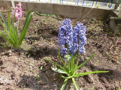 30年度の1年生の花壇では,生活科の学習「あきから そだてる はな」で,球根や種を観察した植物を育てていました。それらの花々が寒い冬を超え,春の日差しの中できれいに咲いています。2年生になるみんなを迎えているようです。