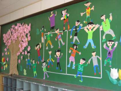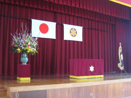 体育館も教室も準備は万端整いました。校門の桜の花もこの日を待っていたかのように開きました。