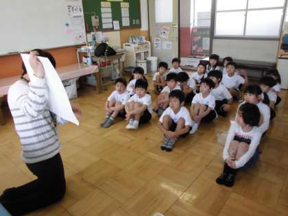 身体計測では,身長・体重を測る以外に保健室の使い方なども教えてもらいました。その時は,体育座りをして上手に話を聞くことができました。