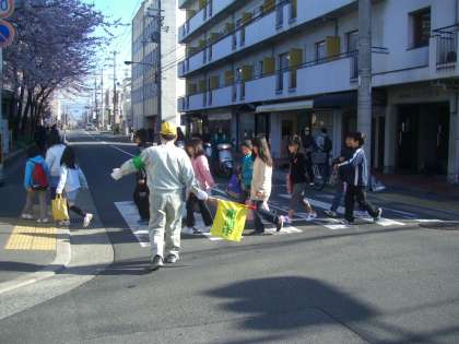 全校児童302名,教職員31名で,平成23年度がスタートしました。今年も校門の桜が美しく咲き,見守り隊の方々に見守られる中,子ども達は元気に登校してきました。