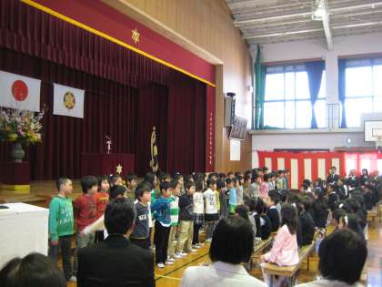 61人のかわいい子どもたち,ようこそ朱七校へ。みんなが来るのを待っていました。入学式で2年生のお迎えのことばを食い入るように聞く姿を,すぐそばで見ることができました。これからもそんな一生懸命の姿をたくさん見せてくださいね。