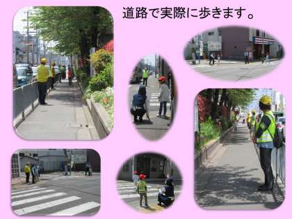 学校運営協議会の学校環境委員会「安全見守り支援」の取組の一つとして,毎年行っています。入学してきた1年生が安全に登下校できるように,4月に交通安全教室を開いています。