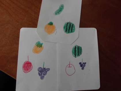 1年生のわくわくグループとの活動に向けて,1年生に渡す自己紹介のカードを作りました。表には,自分の名前と1年生の名前が書かれています。裏には好きなものなどの絵を描きました。それぞれ2枚から3枚作りました。