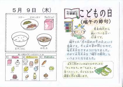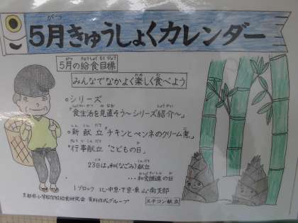 5月の給食目標は「みんなで なかよく 楽しく食べよう。」です。