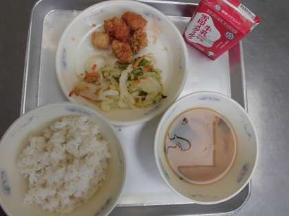 また,みそ汁のお味噌は京北町の赤みそを使っており,地産地消献立でもありました。子どもたちに大人気のチキンカツでご飯にもよく合いました。