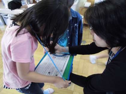 各教室では,2年生が教室の説明をしました。離れ離れにならないようにしっかりと手をつないで回っていました。保健室や理科室などの5か所では,スタンプをゲットすることもできました。1年生も2年生もとても楽しい学習となりました。