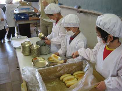 4月12日(火),今日から待ちに待った給食が始まりました。1年生,ちゃんと給食当番できるかな?