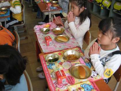 初めての給食の味はどうだったかな。明日聞いてみることにしましょう。