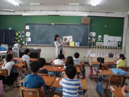 朱雀第七小学校 おはなしの会「ぶんぶん」さんの今年度の活動が,5月14日(火)から始まりました。おはよう読書の時間に1年1組の教室をのぞいてみると,『うしはどこでも「モー!」』エレン・スラスキー・ワインスティーン:作,鈴木出版,「とらのことらこ」きくちちき:作,小学館を読んでくださっていました。おまけに「ぼく,だんごむし」得田之久:作,たかはしきよし:絵,福音館書店も読んでくださいました。