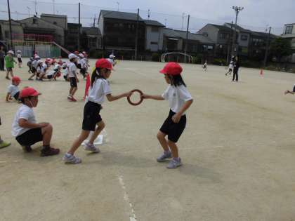2年生の体育では,「リレーあそび」をしています。