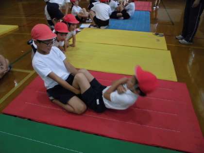 5月16日(木)の3・4時間目は,2年生と4年生のスポーツテストがありました。2年生は,アイビーペアの4年生とペアになって,やり方を教えてもらったり,記録をとってもらったりしました。