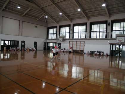 5月17日(金)1時間目には,スポーツテストの一つの種目である「シャトルラン」をしました。シャトルランは,20mの間隔をあけて体育館にコーンを置き,その間を合図に合わせて走ります。合図がなったらスタートし,次の合図がなるまでに20mを走りまた,次の合図がなったら反対に向かってスタートします。20m間の往復を繰り返すことになります。2回連続で間に合わなければ失敗となります。2年生の,この日の最高記録は59回でした。