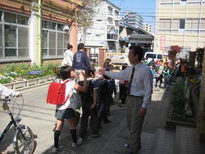 今日は第1回目の町別集会の日。小さいころから知っている気心が知れた同じ町内の仲間というのはいいものです。どの班も,新しい1年生をやさしく気遣いながら並んで帰っていきました。