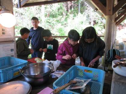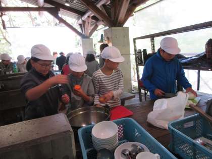 グループで役割分担をうまくして,調理を進めています。段取りよく進めることができていました。