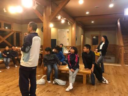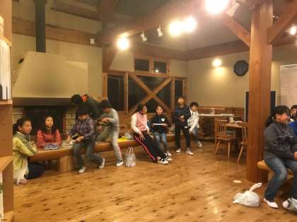 松上げの後は、ホールで花背しりとりを楽しみました。花背に関する言葉を入れながらポイントを競います。盛り上がりました。