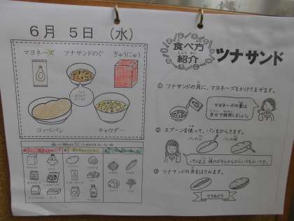 みんな,楽しそうにツナサンドを作って食べていました。チャウダーには,いろいろなお豆が入っていておいしくいただきました。