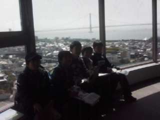 10時,明石市立天文科学館に到着。全員元気とのこと。14階の展望台まで一気に駆け上る子どもたちが目に浮かびます。天気も最高,素晴らしい景色!