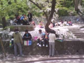 朝が早かったので休憩タイム?その後,近くの柿本人麻呂神社でまちにまったお弁当。本当にお天気よさそうですね〜。