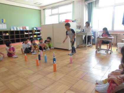 3組のお友達がわなげやさんに招待をしてくれたので,1組は2時間目,2組は3時間目に3組にお邪魔しました。