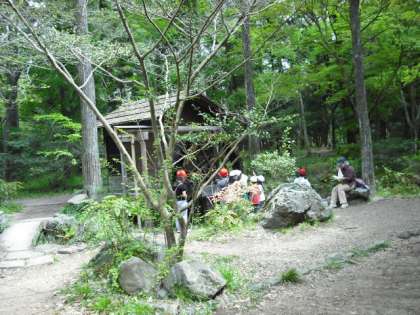 グループの友達と一緒に,水琴窟や水車などチェックポイントをたどりながら,ウォークラリーを楽しみました。