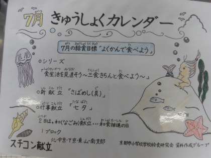 7月の給食目標は「よくかんで食べよう」です。シリーズは「食生活を見直そう〜三食きちんと食べよう〜」です。