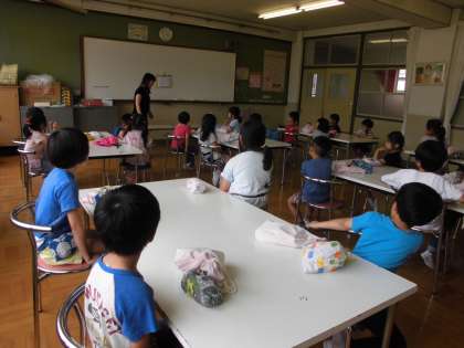 今週は1年1組がランチルームで給食を食べています。月曜日に栄養教諭の先生の「食の指導」がありました。「やさいについて知ろう」という学習をしました。ランチルームの使い方なども教えていただきました。
