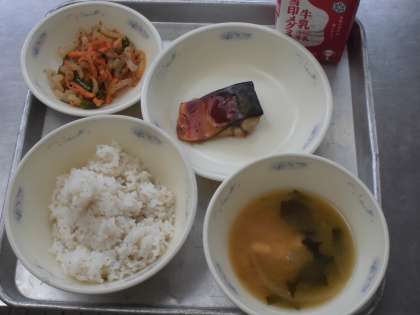 「さばのつけ焼き」はさばをしょうがやしょうゆなどにつけて,スチームコンベクションオーブンを使って焼きました。皮も香ばしく焼けているので,おいしく食べられます。