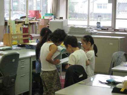 1年生にやさしく,でもちょっぴり自慢げに説明しています。いつもは甘えたの2年生も今日は頼もしいお兄ちゃん・お姉ちゃんに見えます。