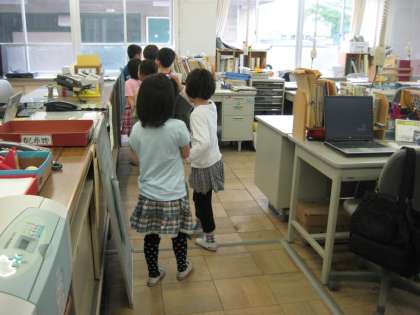「しつれいします。2年1組の○○です。学校探検に来ました。」