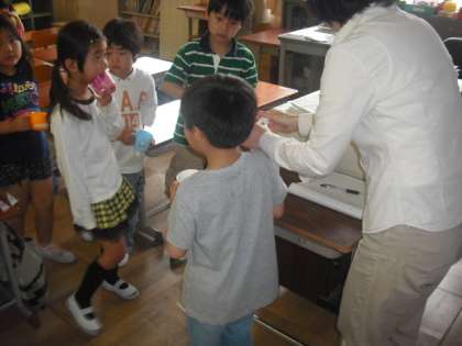今年度最初のフッ化物洗口を行いました。1年生は、初めて行うことになるのですが、上手に「ブクブクうがい」をしていました。