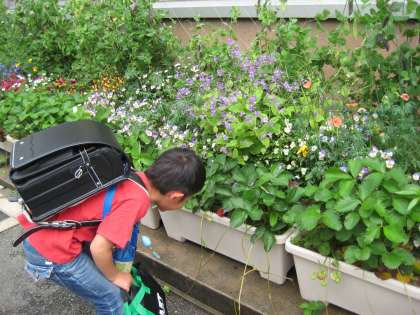 長い間降り続いた雨もやっと上がり,今日は4日ぶりにいい天気となりました。待ちかねたかのように運動場に飛び出してきた子どもたちで,朝休みの運動場はいっぱいです。花を見たり虫を探したりする姿も見られます。やっぱり雨の日より晴れた日の方が子どもたちには似合っています。