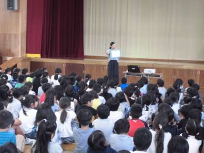 表彰の後は,第42回京都こども美術展で奨励賞を受賞した作品について学校に感謝状をいただいていることの紹介が校長先生からありました。