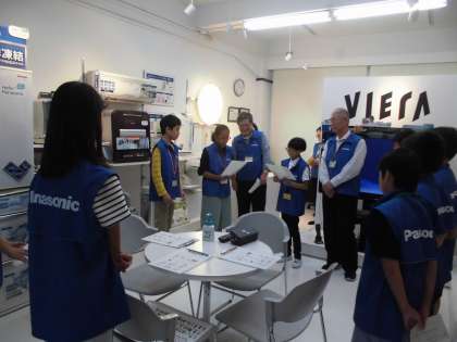 活動の始め・途中・終わりには「社内会議」があります。1回目は,活動内容をスタッフの方やボランティアの方と確認します。みんな,緊張の面持ちでした。2回目は,午前中の活動をふり返りました。自分の働き方やブース全体の様子について意見を出し合い,午後からの活動につなげようとしていました。3回目は,しめくくりの会議です。1日の売上を計算したり,体験の感想を交流したりしていました。