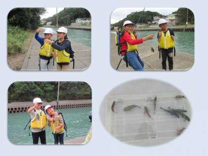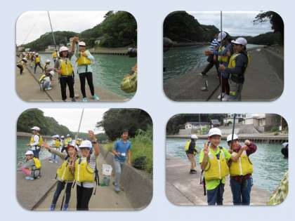 魚つりを行いました。いつもは穏やかな深谷水道も,今日は流れがとても速いです。波が押し寄せてきています。だから,つるのは難しいかといわれていましたが,どんどんつっていきました。なかなか上手でしたよ。