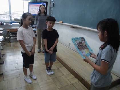 3組の生活単元学習「ぼうしやさんをしよう」では,交流及び共同学習として全クラスに来てもらって「ぼうしやさん」をしています。来てもらう日が決まったクラスには,招待状を持って行っています。また,学習が終ったクラスには,写真とお礼のメッセージを届けています。「書くこと」や「話すこと」の学習になっていて,意欲的に取り組むことができています。