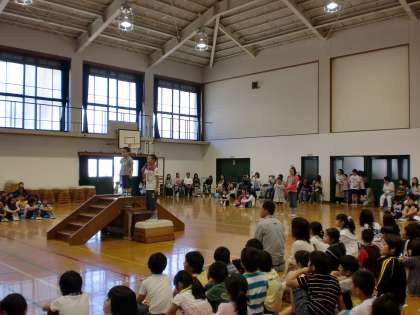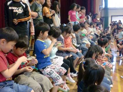 1年生みんな,2年生から5年生までが,いろいろ出し物をしてくれたり,プレゼントを頂いたりしてとても満足そうな顔をしていました。