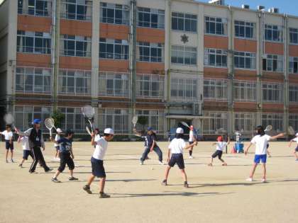 今日は,運動場ではテニス,体育館ではバレーがありました。4年生はどきどき,緊張している様子。でも,5・6年生は慣れたもの,自分たちで始めていました。