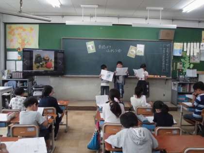 10月25日(金)3組の交流学級の2年2組では,国語科の学習で「お手紙」の音読劇の発表会をしました。国語科は普段3組で学習しているのですが,この単元は音読劇を一緒にしたいので,交流学級で学習する時間も設定していました。