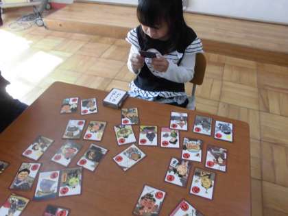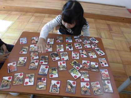 11月1日は「古典の日」ということで,3組では「小倉百人一首」と「江戸いろはかるた」の学習をしました。小倉百人一首では,坊主めくりを楽しみながら,めくった札の和歌を読み学習しました。江戸いろはかるたでは,札をとるだけでなく読み手もして楽しんでいました。日頃の学習で江戸かるたと上方かるたの歌を聴いているので,耳なじみのあることわざもありました。楽しく古典に親しむことができました。