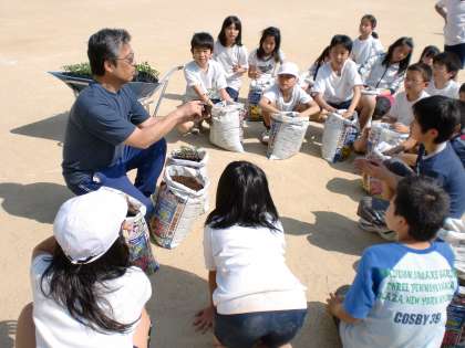 校長先生に土作りから苗を植えるところまで,丁寧に教えていただきました。